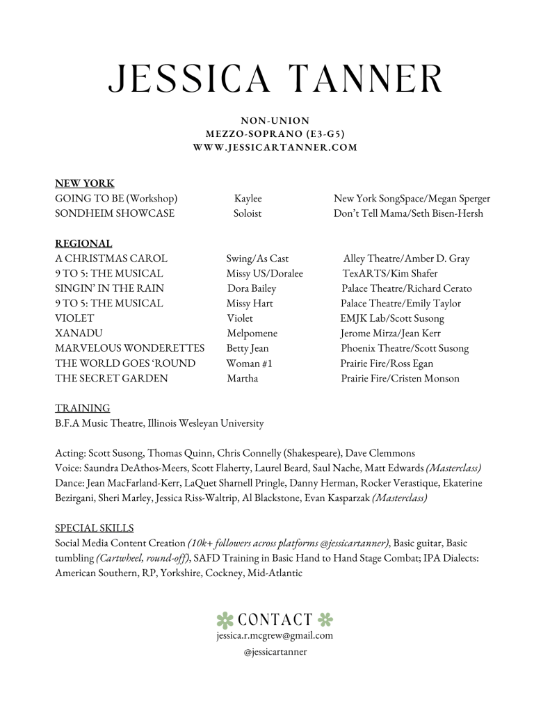 Iโm a Houston-based Mezzo-Soprano mix-belter. I hold a BFA in Music Theatre from Illinois Wesleyan University and have performed regionally and in NYC in new works, musicals, and cabarets.